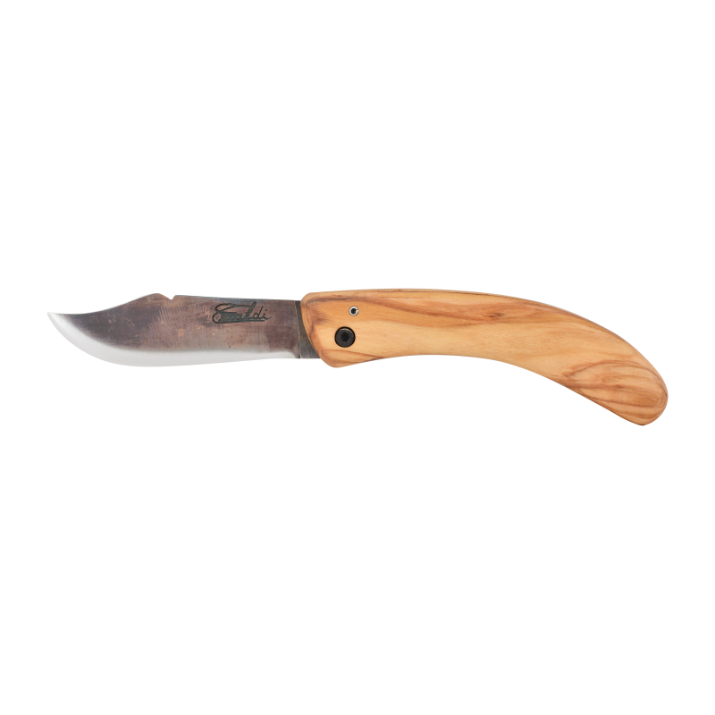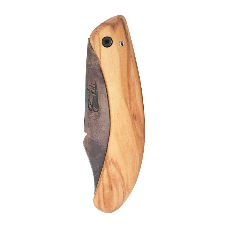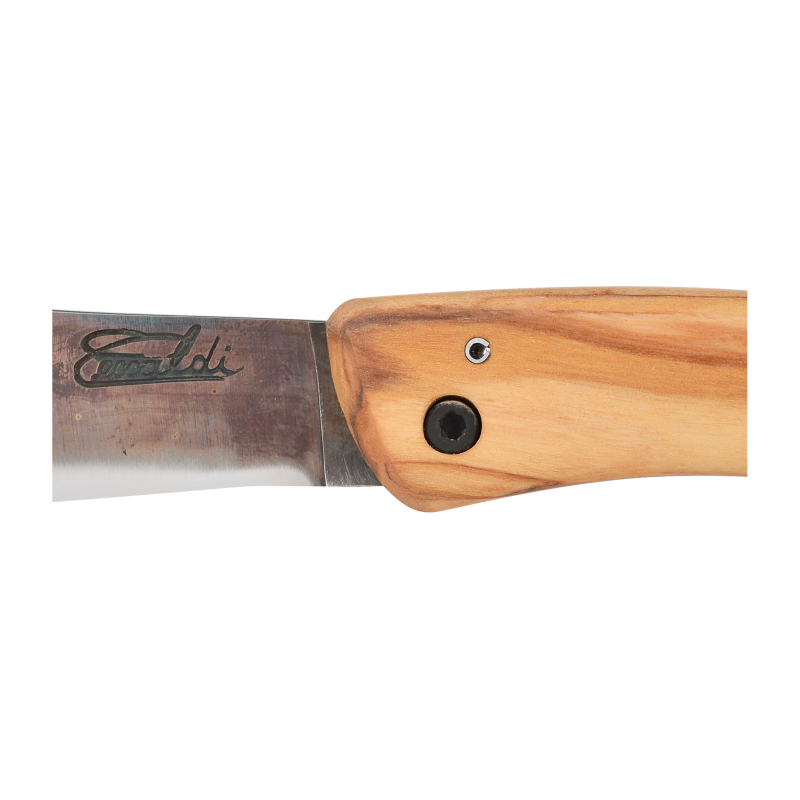 The olive wood that the Ceccaldi company uses is dry and healthy. It has a fair, moderately intense colour, with brown veins. It will form a patina over time. To maintain olive wood, it is crucial not to plunge the handle into water. It is also necessary to oil the handle, once or twice a year, with camellia or olive oil for instance.