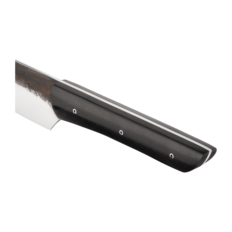 In the course of time, this steel will oxidise and take on a greyish patina. Its advantage is that it can be easily sharpened, which is important when choosing a day-to-day knife. Be careful: it is more demanding to maintain carbon steels than stainless steels.