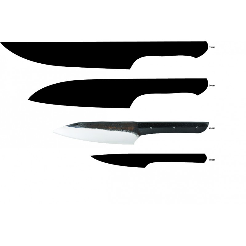 Carbon steel kitchen knife, total length 26 centimeters, ideal dimensions for slicing and cutting vegetables and meat. Kitchen knives are made of carbon steel, this one will, over time, oxidize. It has the advantage of being on the alert very easily, which means that you always have a knife ready to provide the best service. These knives are cutting knives, they should not be used in any other use.