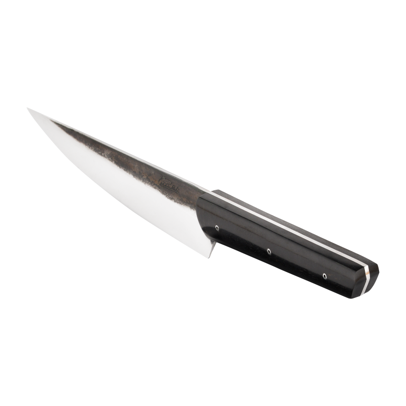 In the course of time, this steel will oxidise and take on a greyish patina. Its advantage is that it can be easily sharpened, which is important when choosing a day-to-day knife. Be careful: it is more demanding to maintain carbon steels than stainless steels.
