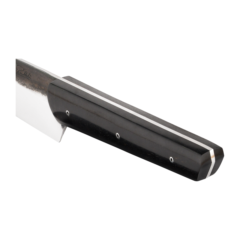 The ebony wood that the Ceccaldi company uses is dry and healthy. It has a black, very intense, sometimes light brown-veined colour. It will form a patina over time but will become matter. To maintain ebony wood, it is crucial not to plunge the handle into water. It is also necessary to oil the handle, once or twice a year, with camellia or olive oil for instance.
