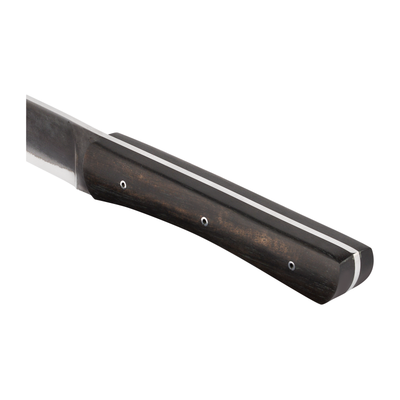 The ebony wood that the Ceccaldi company uses is dry and healthy. It has a black, very intense, sometimes light brown-veined colour. It will form a patina over time but will become matter. To maintain ebony wood, it is crucial not to plunge the handle into water. It is also necessary to oil the handle, once or twice a year, with camellia or olive oil for instance.