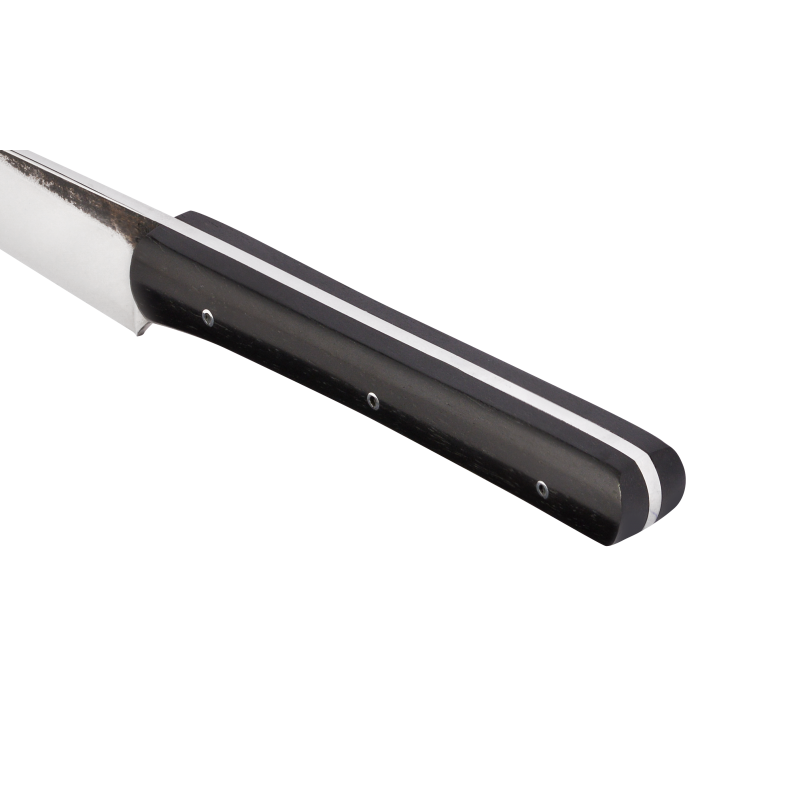 Le bois d'ébène utilisé par la maison Ceccaldi est sec et sain, il présente une couleur noire parfois veinée de marron clair, d'une densité importante, il se patinera peu avec le temps mais deviendra plus mat. Pour l'entretien du bois d'ébène il est impératif de ne pas plonger le manche dans l’eau. Il faudra également huiler ce manche, une à deux fois par an, avec de l’huile de camelia ou d'olive par exemple.