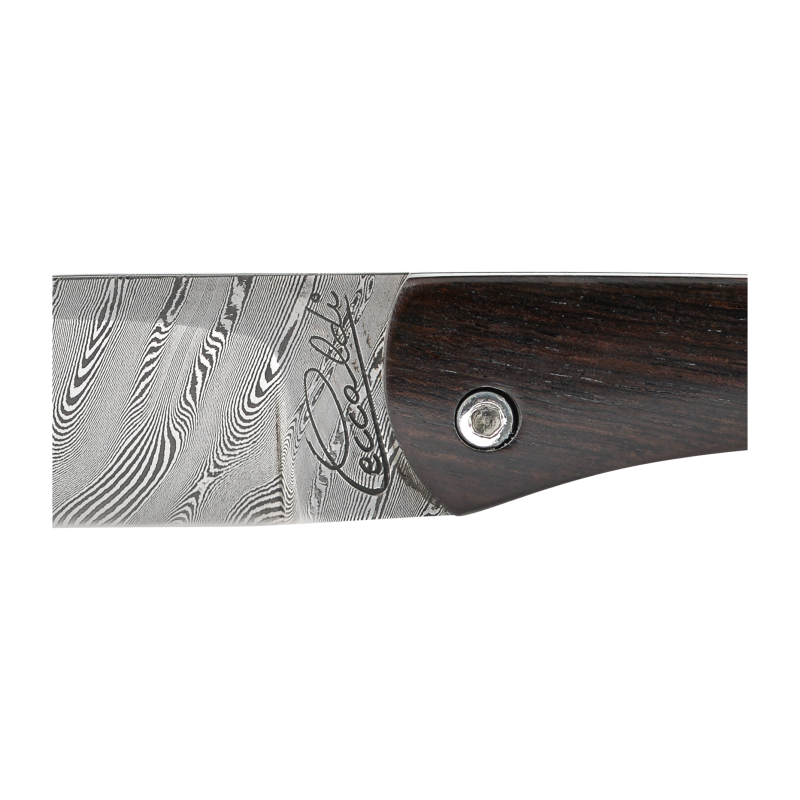 Le Zoza a été créé par Simon Ceccaldi pour fêter les 30 ans de la maison, Zoza étant le nom du village d’où est originaire la famille Ceccaldi et ou le premier atelier fut installé. Ce modèle, un petit peut plus long que les couteaux de berger ou les vendettas, est d’une polyvalence appréciable, aussi bien pour la table que pour les petits travaux de cuisine. Le système de fermeture pour le Zoza est un cran forcé, il est entièrement monté à l’aide de vis en acier inoxydable.