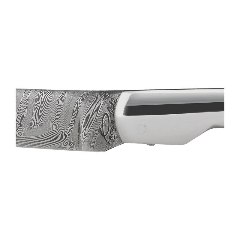 L'entretien de cet acier est le même que pour un acier carbone ; il faudra toutefois veiller à nettoyer la lame immédiatement après l'avoir utilisée, sans le rayer, afin de préserver les lignes présents sur la lame.